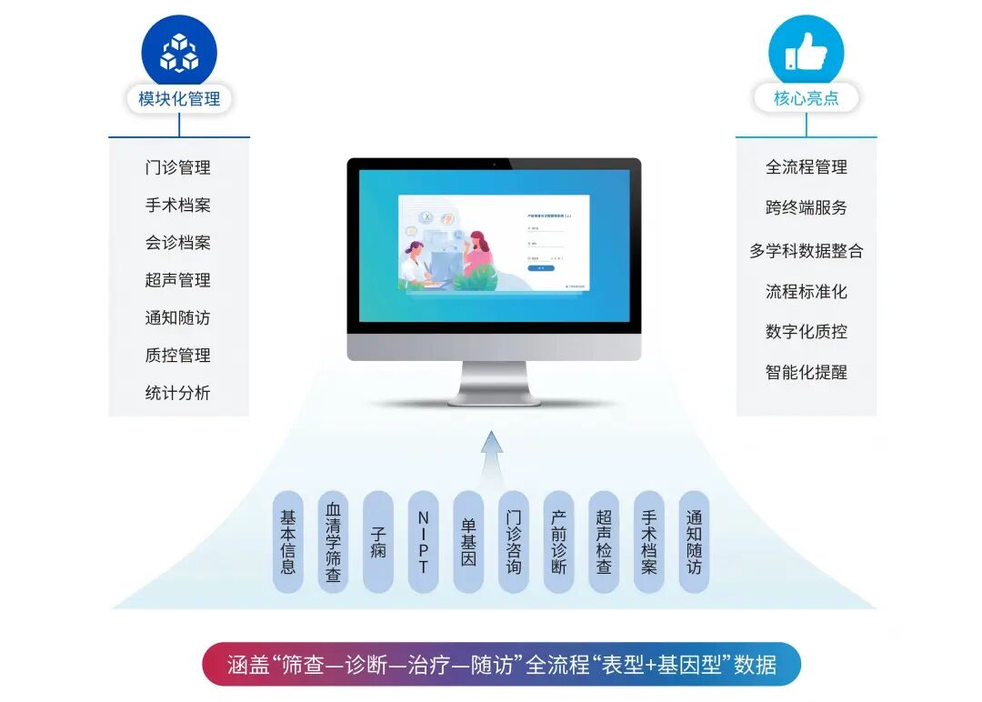 推动早孕一站式筛查落地,离不开信息系统的支持。通过打通超声、检验、临床之间的数据壁垒,构建以孕妇为中心的一体化管理平台,实现从筛查、诊断、MDT会诊到随访的全流程数字化管理,为医疗团队赋能,也为家庭减负。